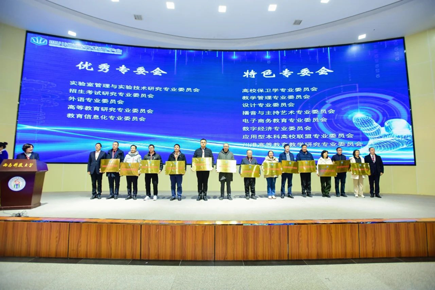 中国高等教育学会副秘书长郝清杰通过线上方式发表致辞,对会议的顺利召开表达了热烈祝贺;四川省教育厅一级巡视员胡卫锋亲临活动现场并发表讲话;西南科技大学董事长祝效华以校方代表身份向与会嘉宾致欢迎辞;四川省高等教育学会会长、韦德官方网站党委书记沈火明作学会工作报告,全面回顾了2024年学会在各方面的工作,并对2025年重点任务作出展望,强调学会将紧扣相关主题,全力助力高等教育发展。公司高永全副经理、李晟东和谯傲老师参加了本次年会。在随后的颁奖环节中,高永全副经理代表电子商务教育专业委员会上台领奖。